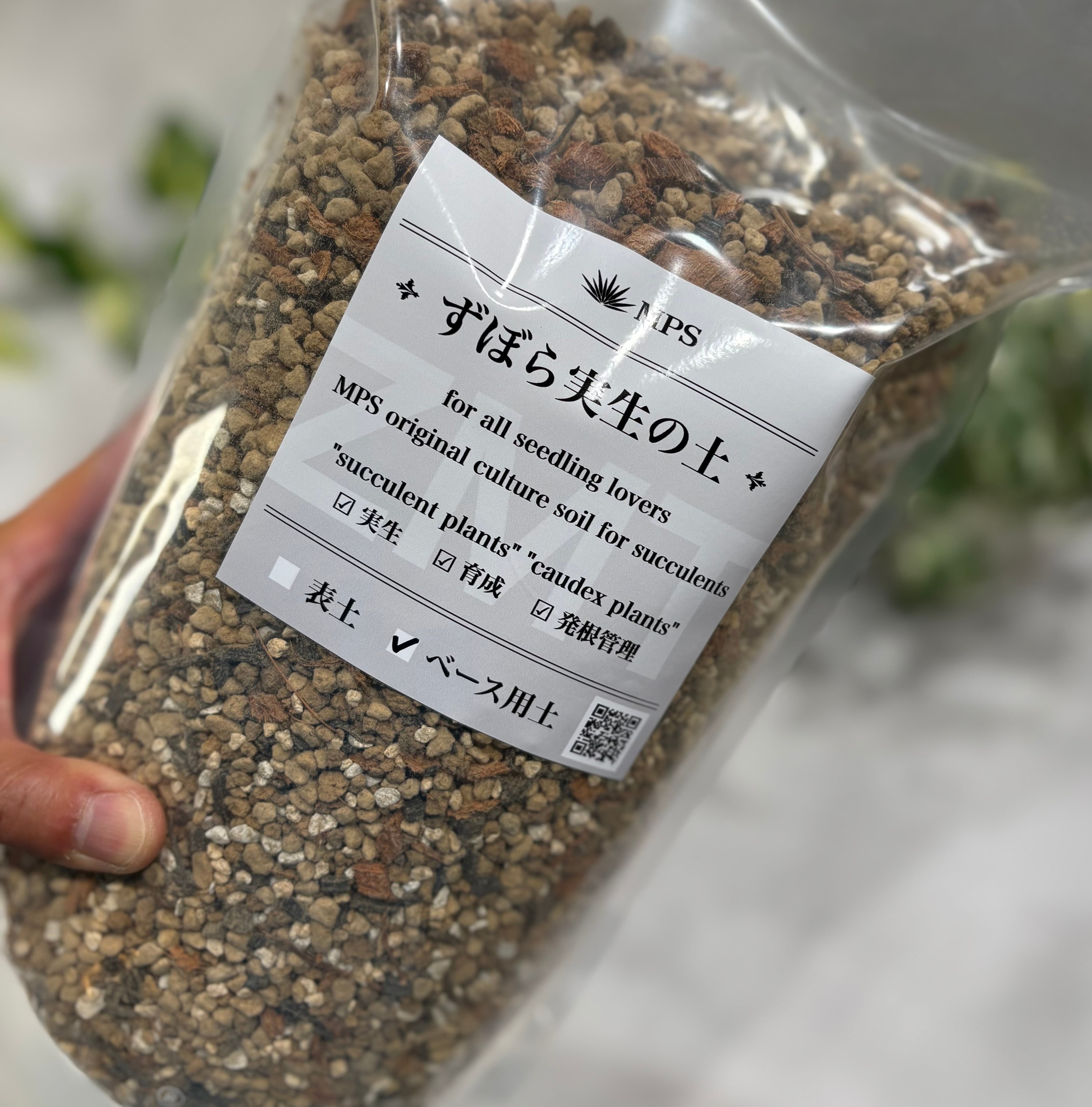 ずぼら実生の土【ベース用土3L】 実生から子株の育成までオールマイティーに使えるMPSオリジナル多肉・塊根植物向け培養土- ♦︎♦︎♦︎♦︎♦︎ 当商品はMPS YouTube channel のコンテンツ『ずぼら実生』から誕生した商品であり、誰でも手軽に『ずぼら実生』を体験出来ることを目的とした商品です。 自身が経験してきた実生における悩みやトラブルのみならず視聴者様からお寄せ頂いた声を元に、"誰でも使いやすい土"を追求し企画・開発した土になります。 是非MPS YouTube『ずぼら実生』と共にお楽しみいただけたら嬉しく思います。 この土がご利用者様にとってボタニカルライフの楽しい一コマとなれれば製作者としても心より嬉しく思います。 ♦︎♦︎♦︎♦︎♦︎ 【特記】 ・2024.03.29 ずぼら実生の土各種販売開始 ・2024.11.11 累計販売袋数500袋突破 ・2025.04.02 資材一部変更実施 ・2025.06.18 予約・受注販売開始 ・2025.07.22 ラインナップ追加 フルモデルチェンジ・価格改定実施 ♦︎♦︎♦︎♦︎♦︎ 商品紹介・使い方はこちらをご覧ください。 https://youtu.be/5dqy4gSGl8I ※本商品は熱湯消毒後に天日干しにて日光消毒をしています。 天候の都合・資材調達や運送業者の兼ね合いなどから納期に若干お時間を頂く場合もございます。 (発送目安:2日〜10日間)
